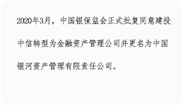 2020年(nián)£3月(yuè),原中國(guó)銀(yín)保監會(huì)批複同意建投中信轉型為(wèi)金(jīn)融資産管理(lǐ)公司并更名為(wèi)“銀和世紀(北京)資産管理有限公司”。